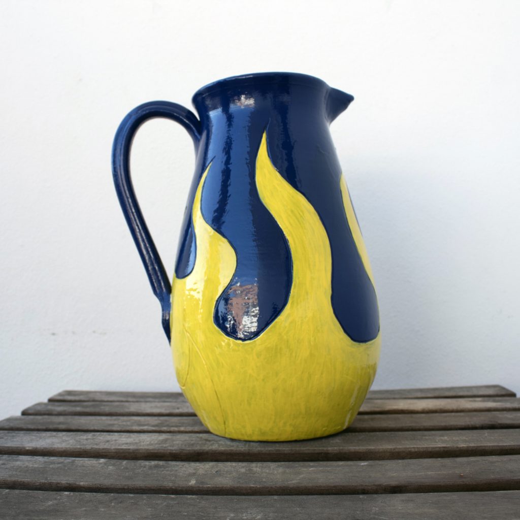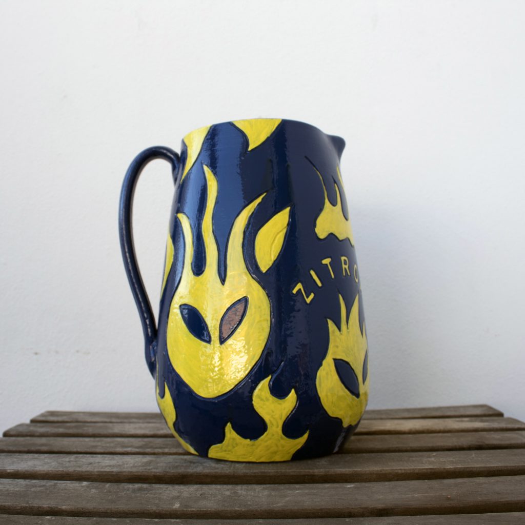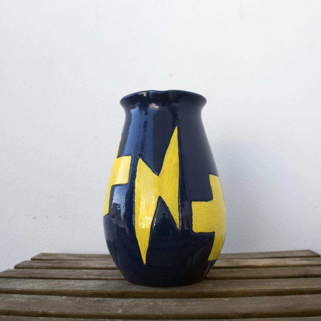 Handmade ceramic piece, hand painted, two colors, glossy varnished.