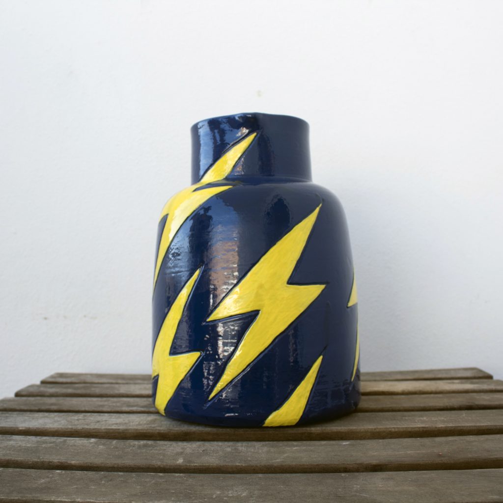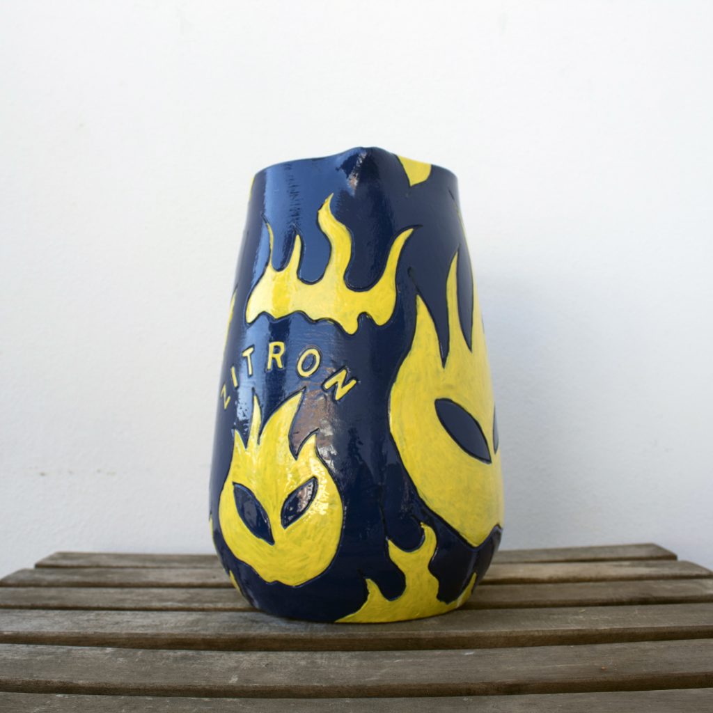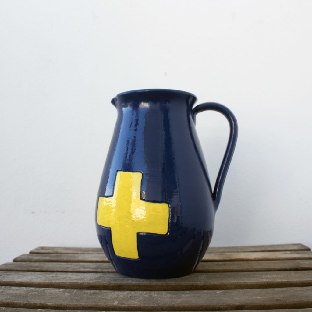 Handmade ceramic piece, hand painted, two colors, glossy varnished.